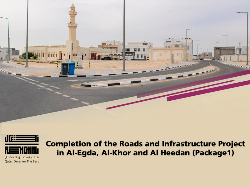 The Public Works Authority ‘Ashghal’ announced the completion of all works on the first package of the Roads and Infrastructure Development Project in Al-Egda, Al-Khor, and Al-Heedan. The project serves the new citizens’ land plots in the area, which is located West of Al-Bayt Stadium, specifically North of Al-Khor Coastal Road and Al-Egda Street, and West of Al-Heedan Street. The project serves the area through the construction of an internal road network and the provision of advanced infrastructure facilities that meet the needs of residents and keep pace with future urban expansion.