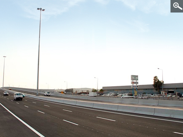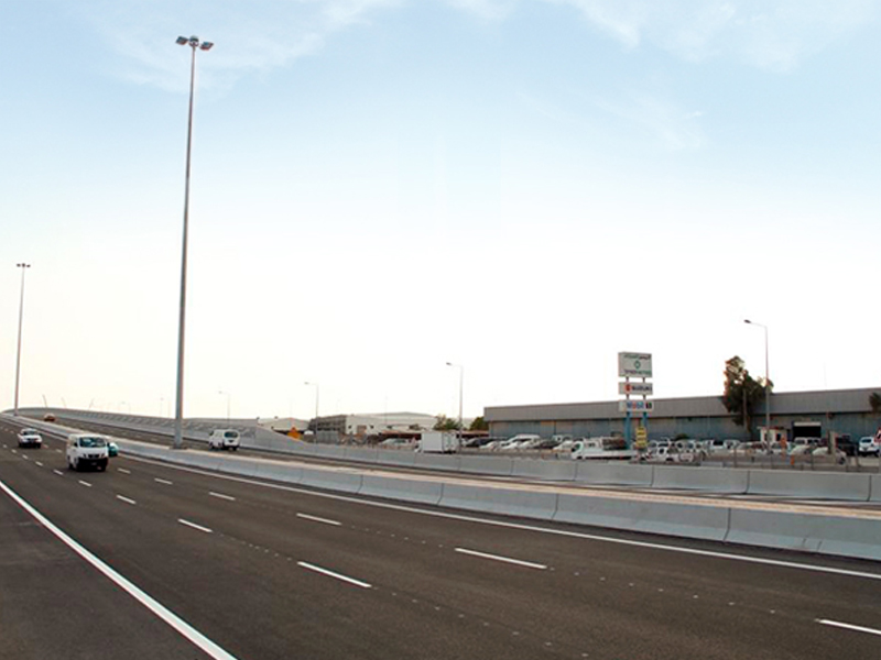 The East Industrial Street project included the construction and upgrading of the existing street from the south of the Industrial Interchange to the existing roundabout at the junction of the East Industrial Street with the Industrial Road. The implemented mainline road is 3 km in length, and comprises a six-lane divided carriageway, with three lanes in each direction, in addition to a two-lane service road network with a total length of 6 km.