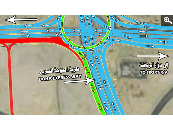 The Public Works Authority ‘Ashghal’ announces a partial closure of the side road coming from Bin Zayen Roundabout (Dawar el Mokafha) in the direction of Al Rayyan roundabout.