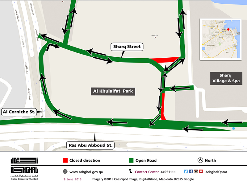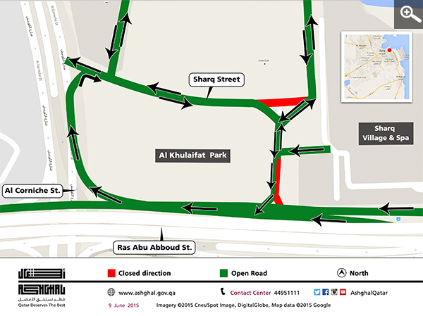 Street, turning right to Sharq Street. Vehicles exiting Sharq Village and Spa
