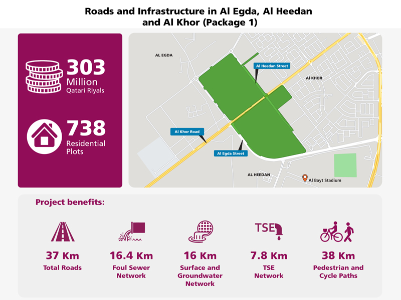 It is worth noting that the The Roads and Infrastructure in Al Egda Al Heedan and Al Khor (Package 1) Project is being implemented by Al Darwich Engineering, at a cost of approximately QAR 303 million. It is divided into three geographical zones which will be carried out successively. The duration of each phase will be one year while the full completion of the project is scheduled for Q2, 2023.
